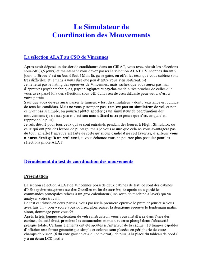 Pour commencer, noubliez pas que lpreuve du simulateur est largement liminatoire, elle