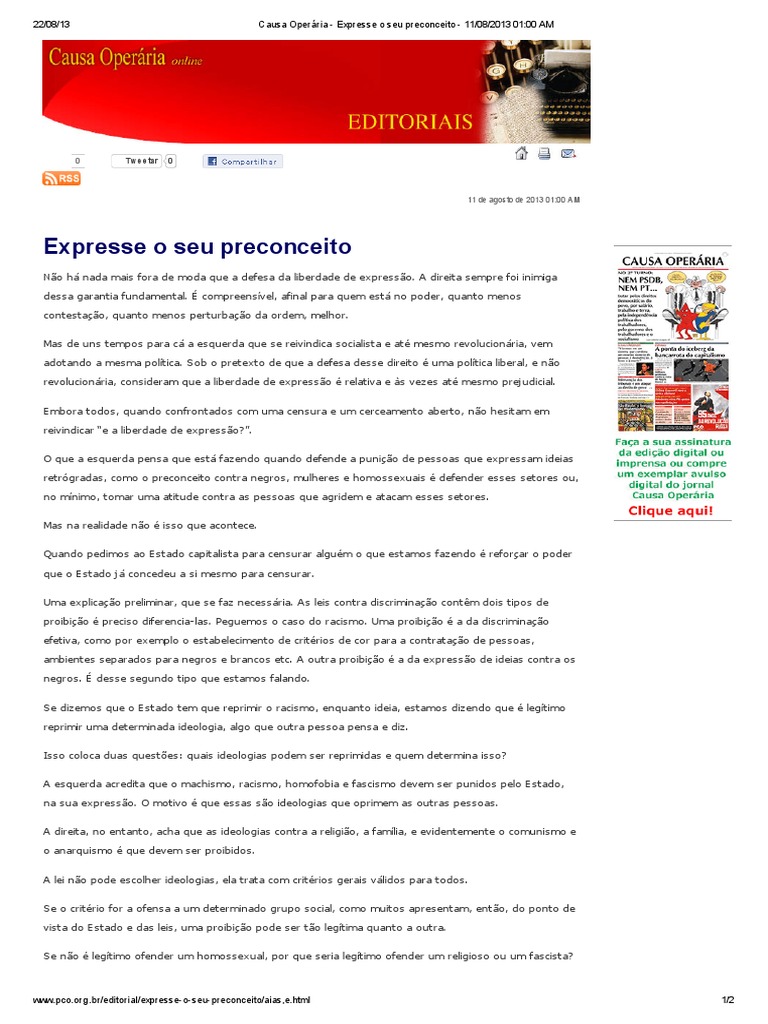 22/08/13 Causa Operria - Expresse o seu preconceito - 11/08/2013 01:00 AM