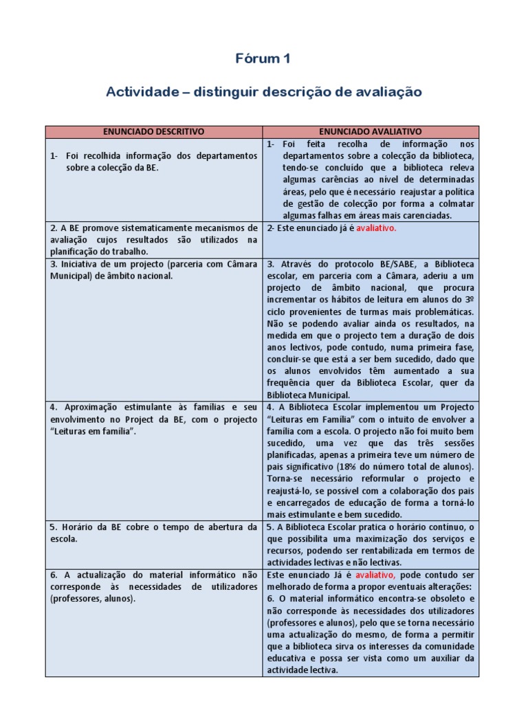 2. A BE promove sistematicamente mecanismos de 2- Este enunciado já é avaliativo.