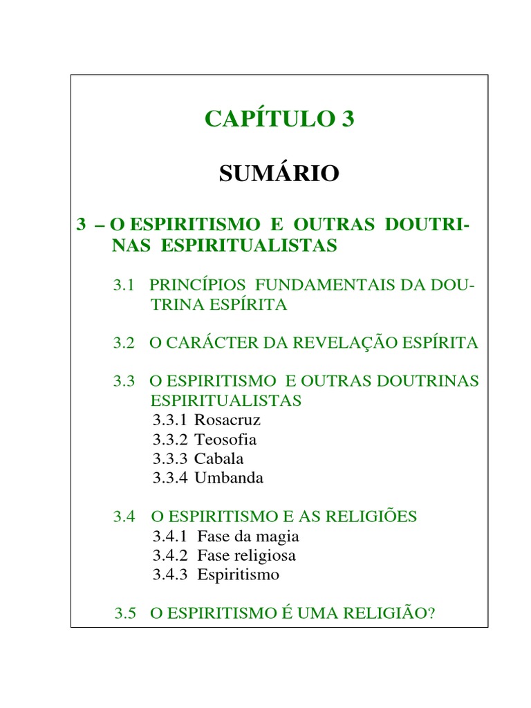 3 – O ESPIRITISMO E OUTRAS DOUTRI- NAS ESPIRITUALISTAS
