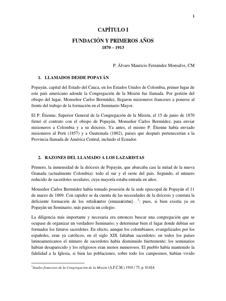 Archivo de la Congregacin de la Misin (A.C.G.) Roma. 497. Maison de Popayn I. 01/1870.