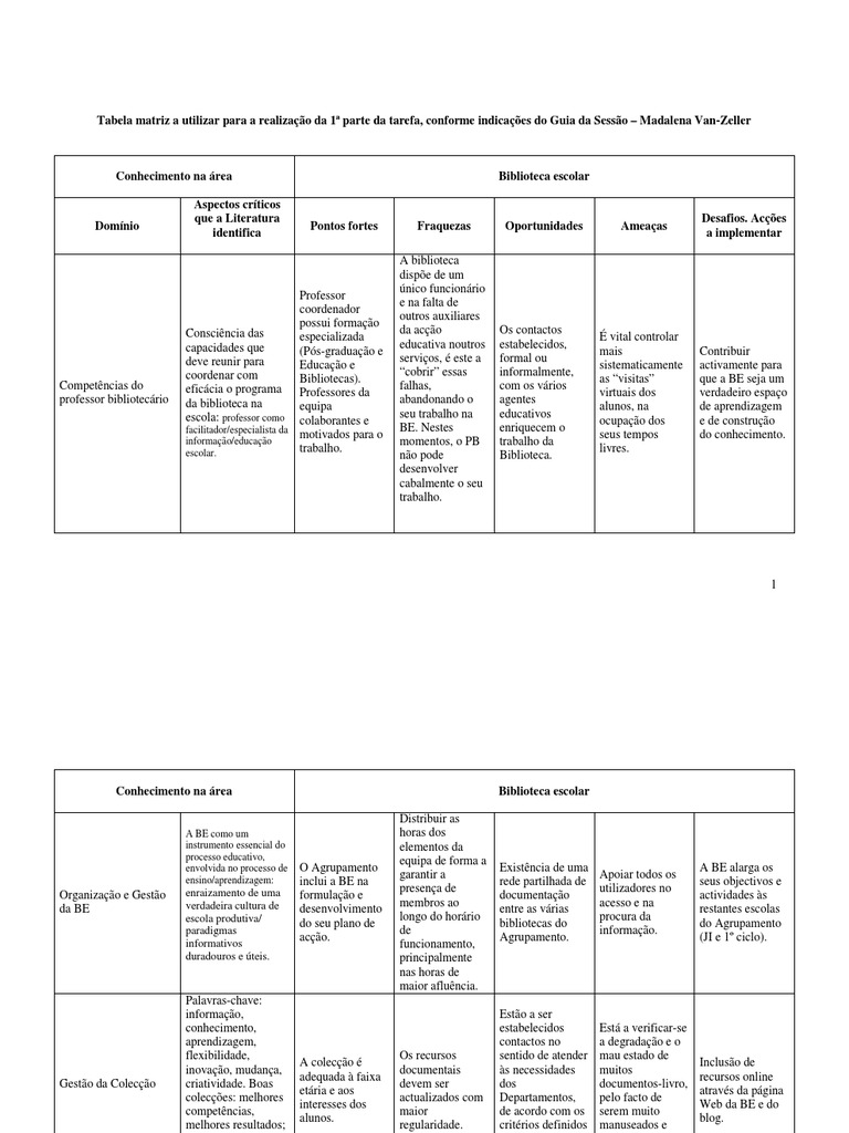 Conhecimento na área Biblioteca escolar