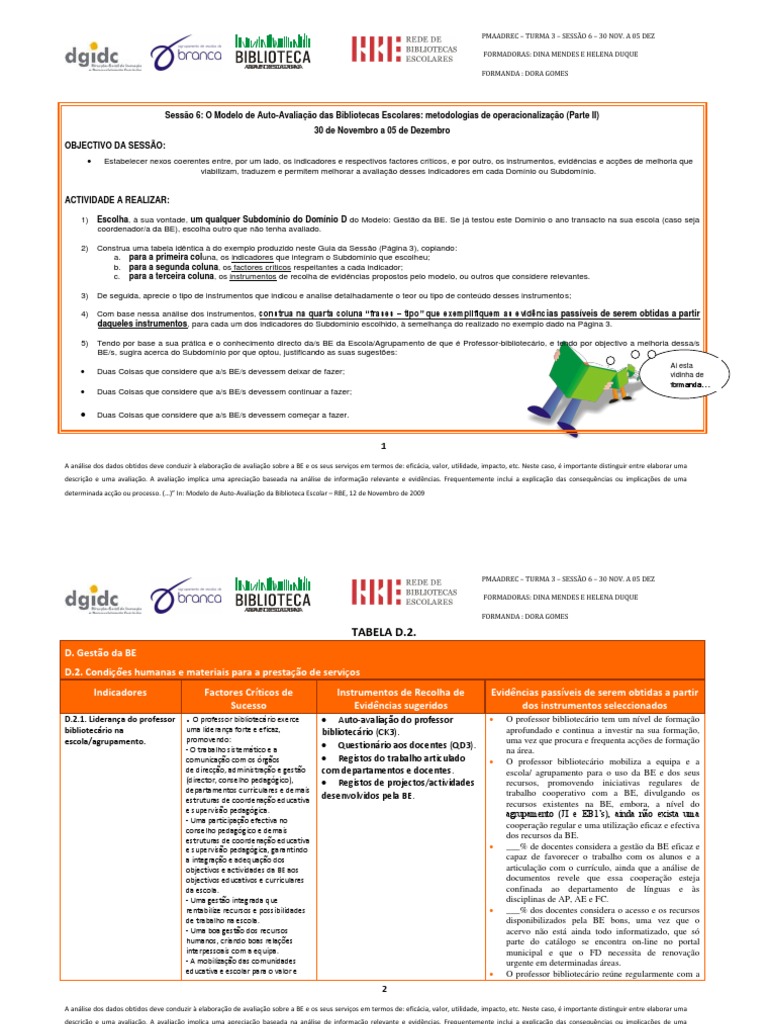 Sessão 6: O Modelo de Auto-Avaliação das Bibliotecas Escolares: metodologias de operacionalização (Parte II)