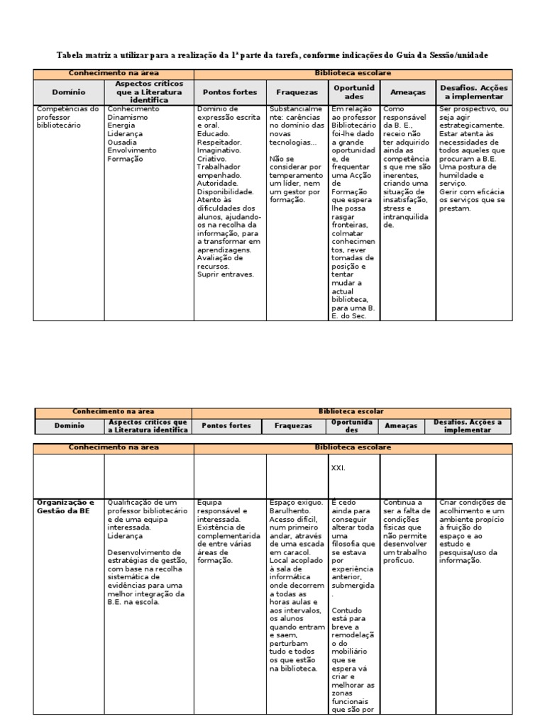 Conhecimento na área Biblioteca escolar