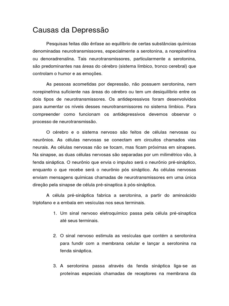 As pessoas acometidas por depresso, no possuem serotonina, nem