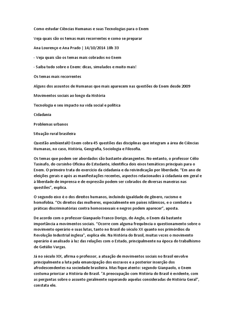 Confira alguns exemplos de como os temas de Cincias Humanas costumam ser cobrados: