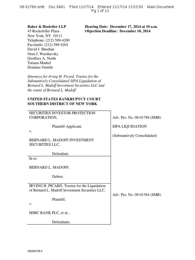 Procedure; and the Court having considered the Affidavit of Irving H. Picard in support of the