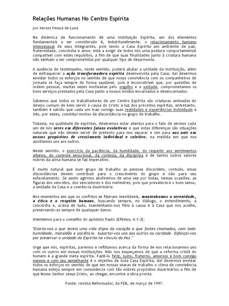 interpessoal de seus integrantes, pois sendo a Casa Esprita um ambiente de paz,