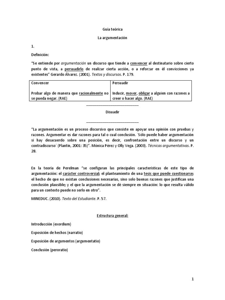 “Se entiende por argumentación un discurso que tiende a convencer al destinatario sobre cierto