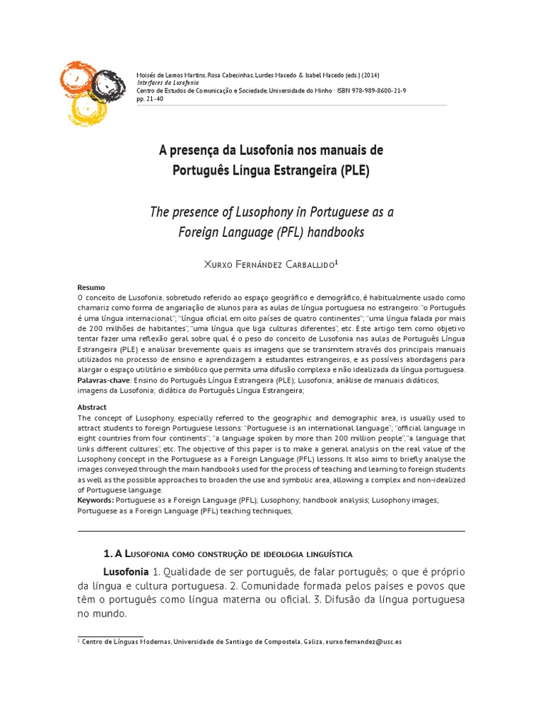Palavras-chave: Ensino do Portugus Lngua Estrangeira (PLE); Lusofonia; anlise de manuais didticos;