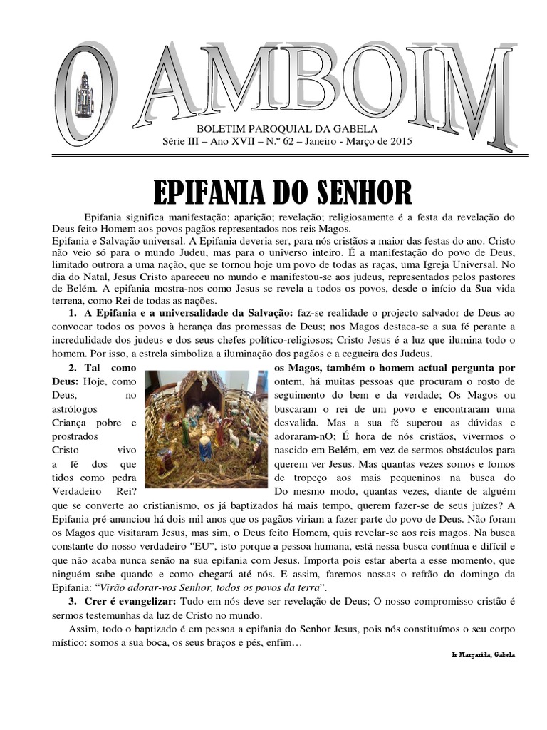 O AMBOIM - Boletim Paroquial da Gabela. Srie III Ano XVII N 62 Janeiro - Maro de 2015;