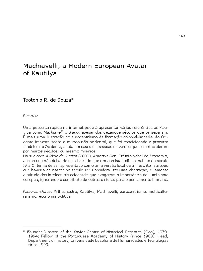 Palavras-chave: Arthashastra, Kautilya, Machiavelli, eurocentrismo, multicultu- ralismo, economia política
