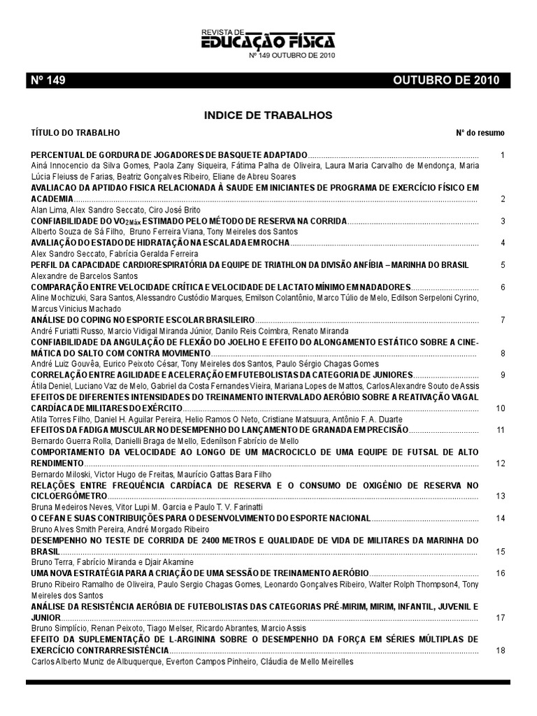 62 Revista de Educao Fsica 2010; Rio de Janeiro (RJ) - Brasil