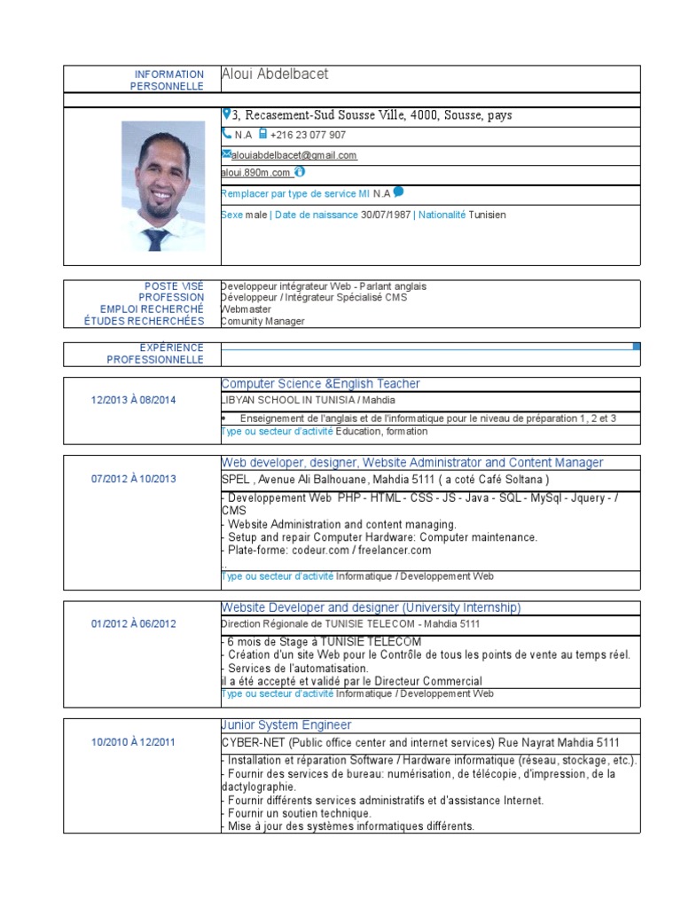 Sexe male | Date de naissance 30/07/1987 | Nationalit Tunisien
