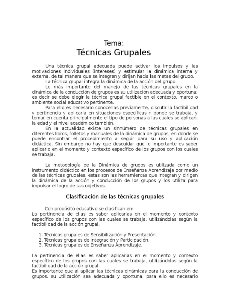 es decir se debe elegir la técnica grupal factible en el contexto, marco o