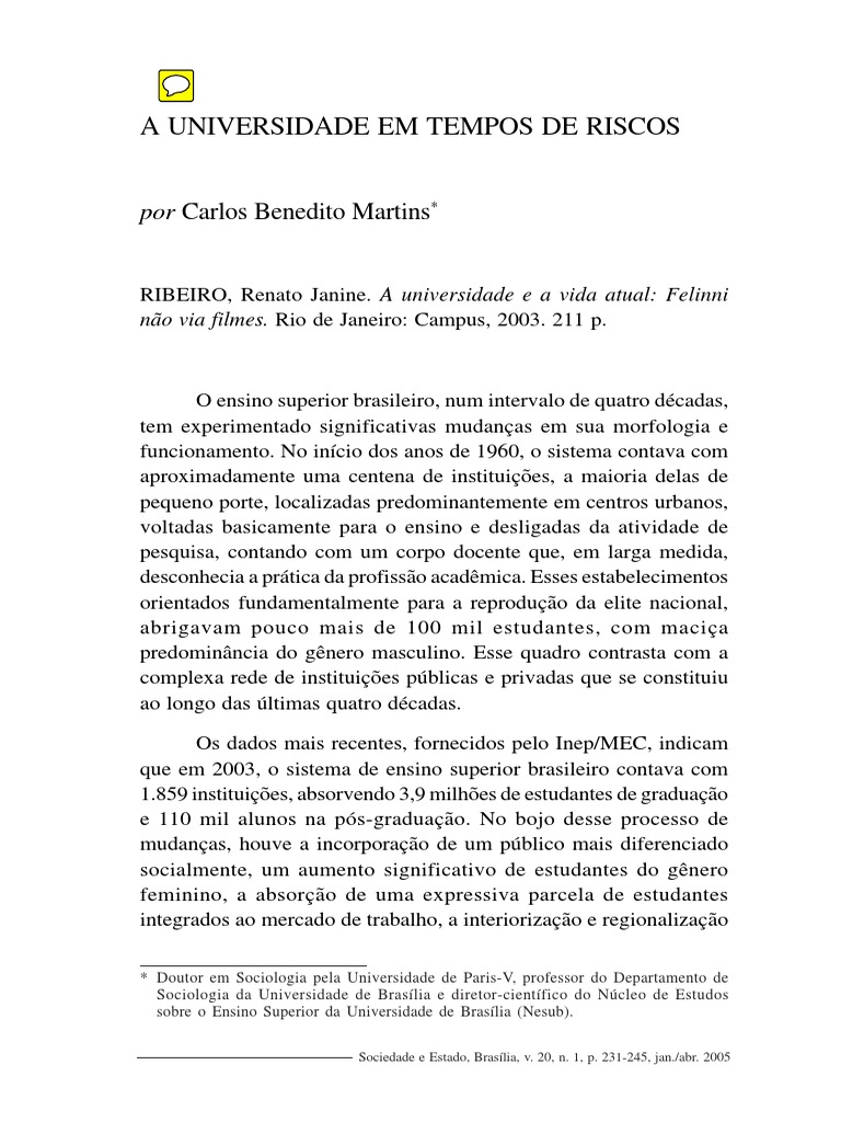 sobre o sistema de ensino superior brasileiro contemporneo. Revista