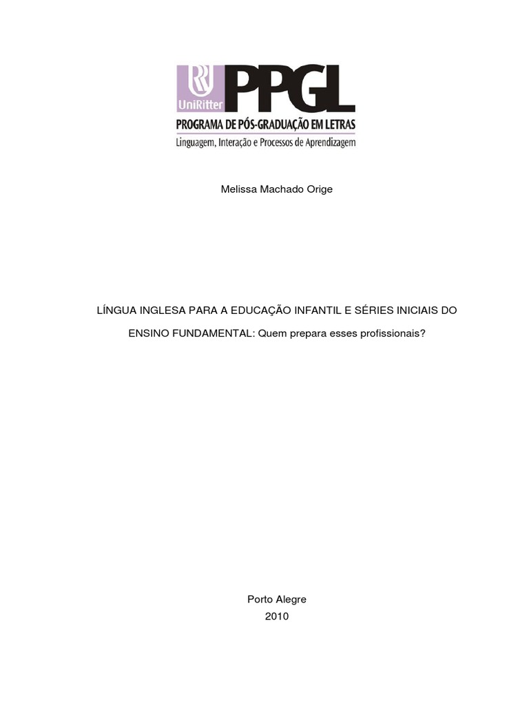 Habilitada em Letras – Inglês, Português e Literaturas, iniciei minha carreira lecionando inglês para crianças a partir dos 3 anos. Antes mesmo de entrar em sala de aula, no momento da preparação dos planos, surgia o primeiro desafio: por onde começar? A partir dessa situação, questionei-me se estaria realmente preparada e teria as habilidades necessárias para desempenhar as funções de professora de inglês em turmas dessa faixa etária. Como consequência dessa situação, decidi fazer um estudo que também contribuísse para o aprimoramento das minhas aulas e para outros profissionais que, assim como eu, ousam ir além do cronograma para deixar de ser um observador do sistema e tornar-se, de uma forma ou de outra, um transformador do mesmo. O panorama do ensino de inglês como língua estrangeira (LE) a partir da educação infantil em escolas particulares no Brasil, na última década, confirma a tendência ascendente da procura dessa modalidade de ensino. Por outro lado, praticamente todas as escolas públicas oferecem esse idioma, conforme os Parâmetros Curriculares Nacionais (PCNs, 1998) 1 , apenas a partir da 5ª série (hoje, 6º ano do ensino fundamental), o que distancia o sistema público do privado. Sendo assim, para professores de LE, as possibilidades de trabalho para o ensino infantil e primeiras séries do fundamental estão em escolas particulares. De acordo com Ana Stahl Zilles (2006, p.4),