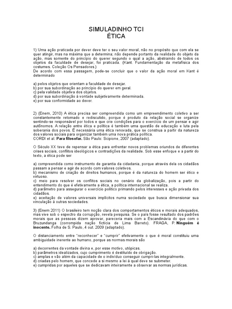2) (Enem, 2010) A tica precisa ser compreendida como um empreendimento coletivo a ser