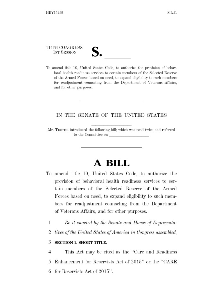 Enhancement for Reservists Act of 2015’’ or the ‘‘CARE