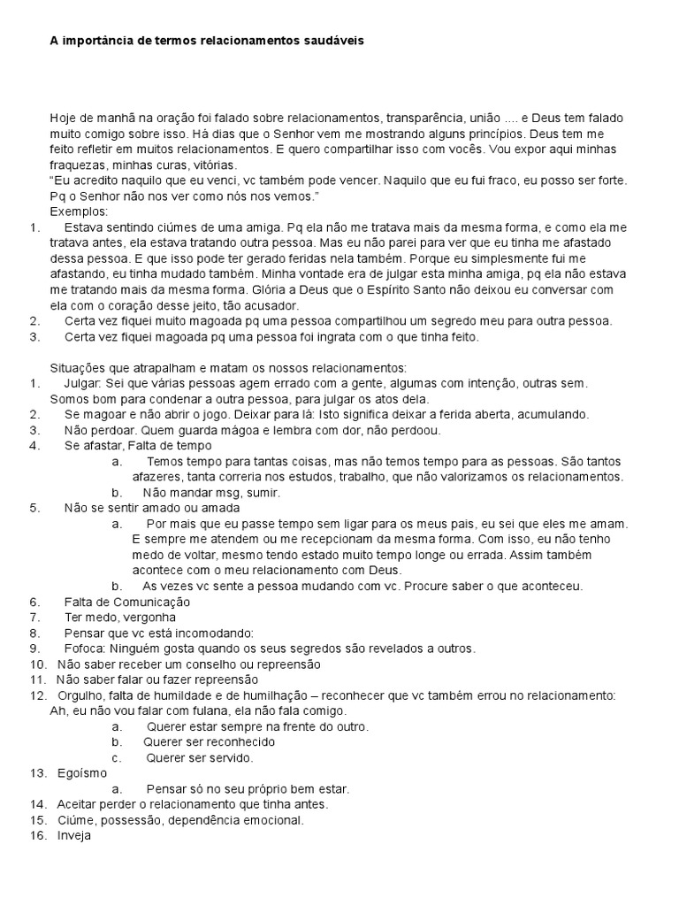 feito refletir em muitos relacionamentos. E quero compartilhar isso com vocs. Vou expor aqui minhas