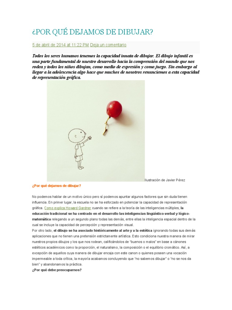 Todos los seres humanos tenemos la capacidad innata de dibujar. El dibujo infantil es