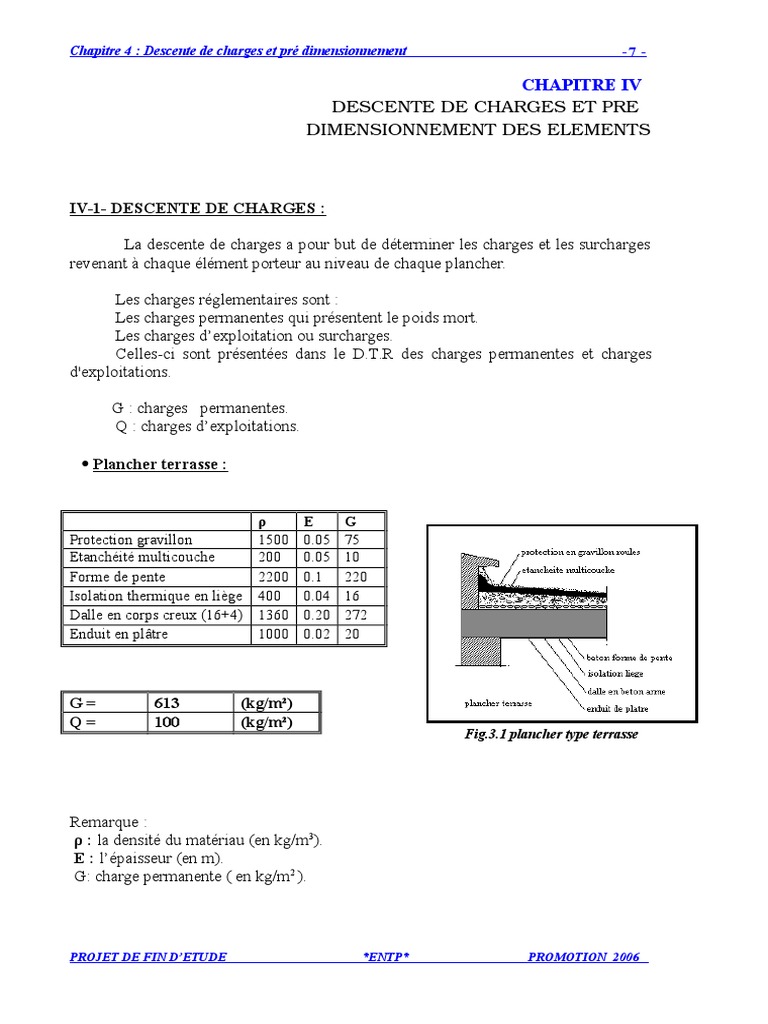 La descente de charges a pour but de dterminer les charges et les surcharges