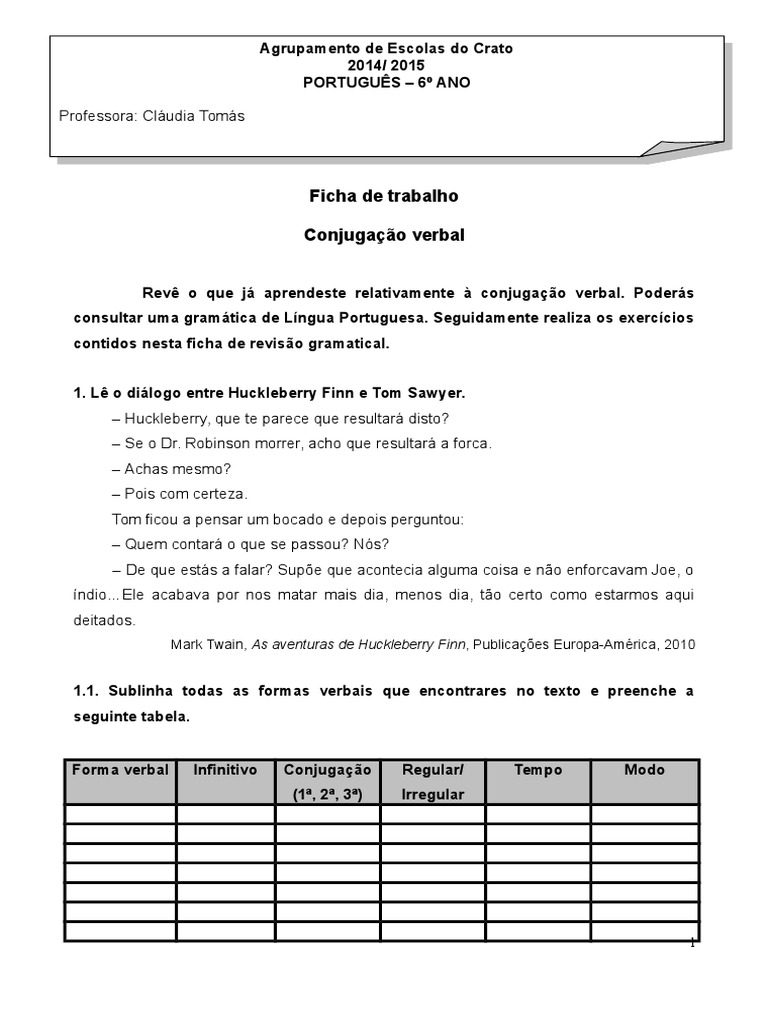 Rev o que j aprendeste relativamente conjugao verbal. Poders
