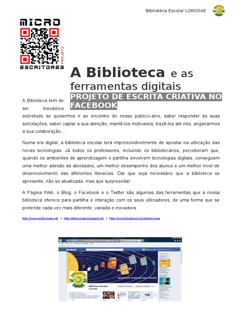 Consiste na formao de um grupo de escrita criativa no Facebook da nossa Biblioteca e tem