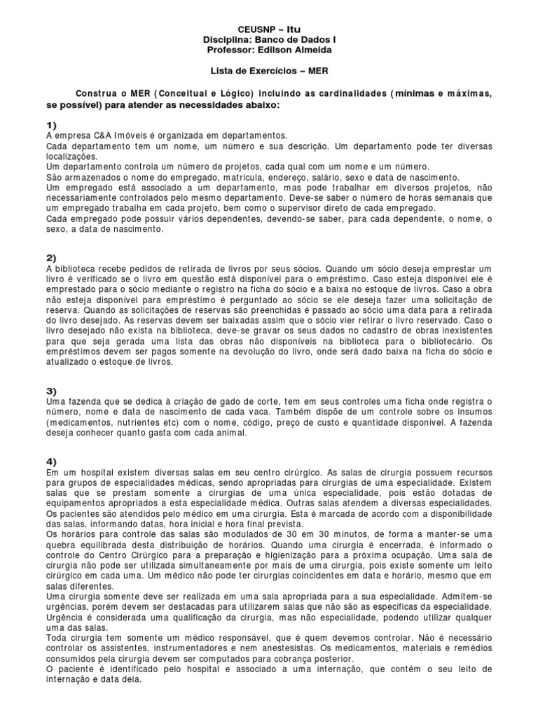 Uma clnica de diagnsticos por imagem pretende informatizar seu banco de dados, conforme