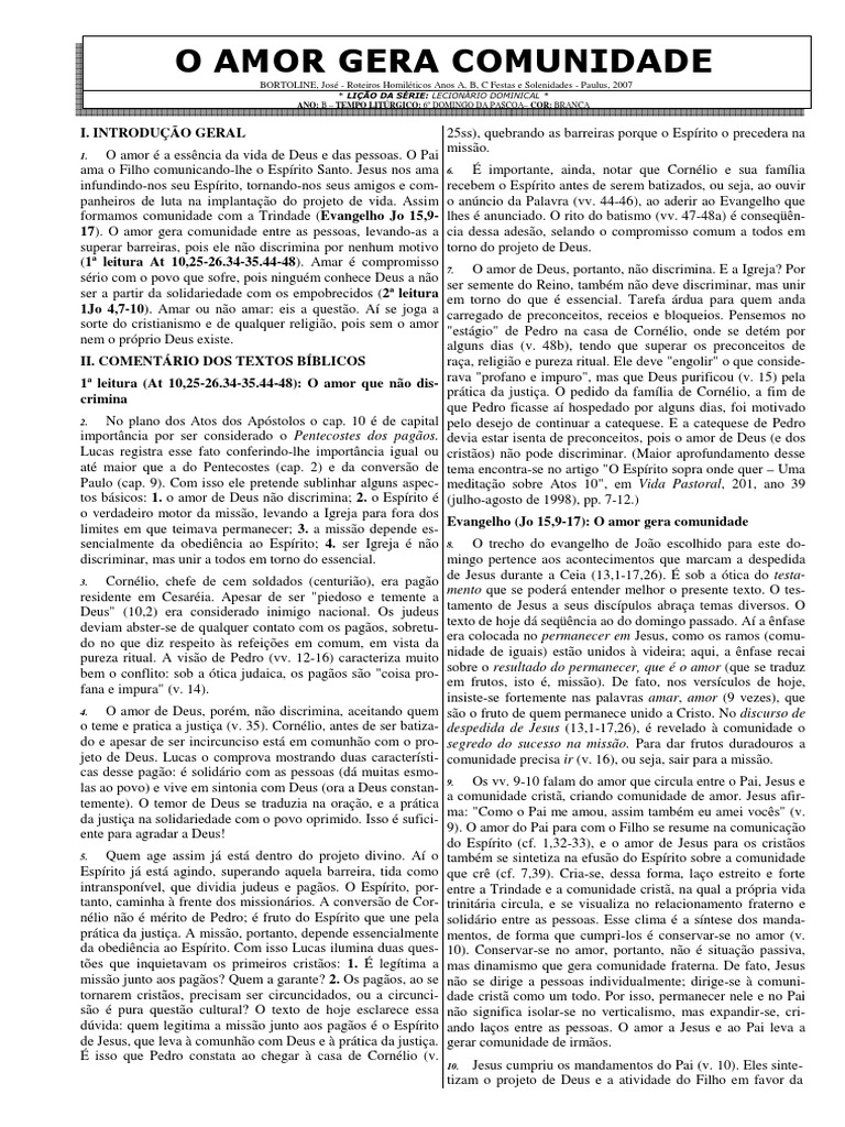 cas desse pago: solidrio com as pessoas (d muitas esmolas ao povo) e vive em sintonia com Deus (ora a Deus constan- 9. Os vv. 9-10 falam do amor que circula entre o Pai, Jesus e