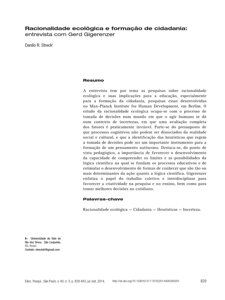 Racionalidade ecolgica Cidadania Heursticas Incerteza.