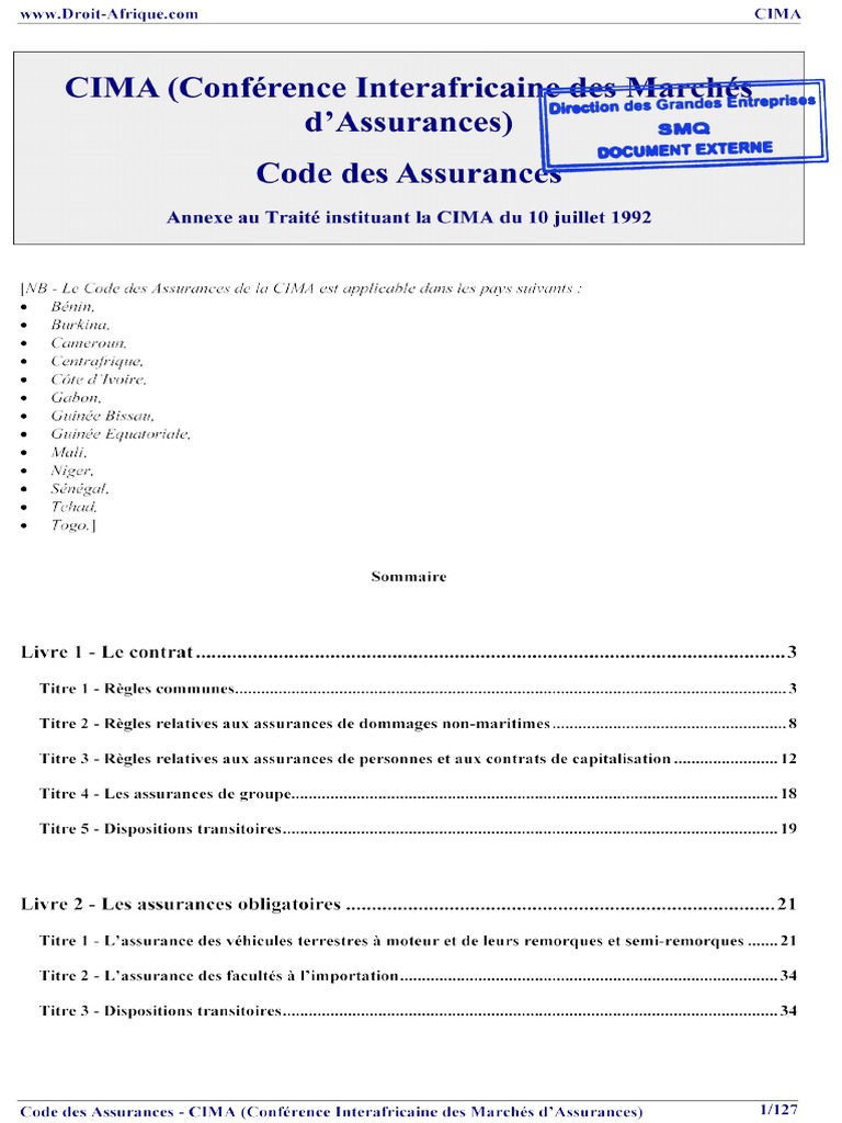 sur le territoire dun Etat membre de la CIMA de