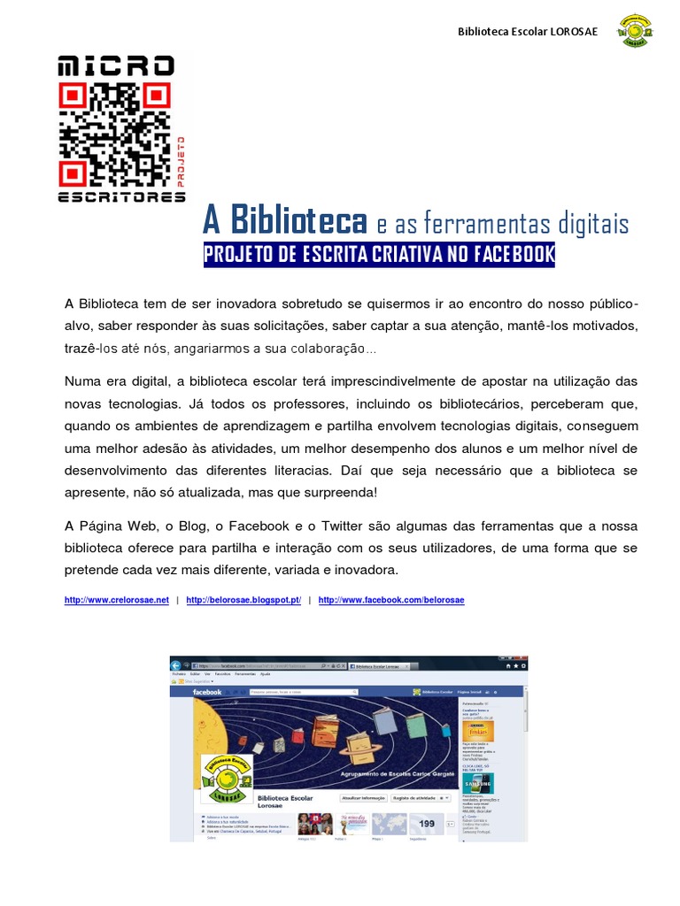 Consiste na formao de um grupo de escrita criativa no Facebook da nossa Biblioteca e tem