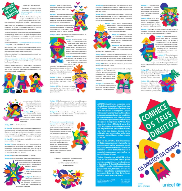 Artigo 1 Todas as pessoas com menos de 18 anos têm todos os direitos escritos nesta Con- venção.