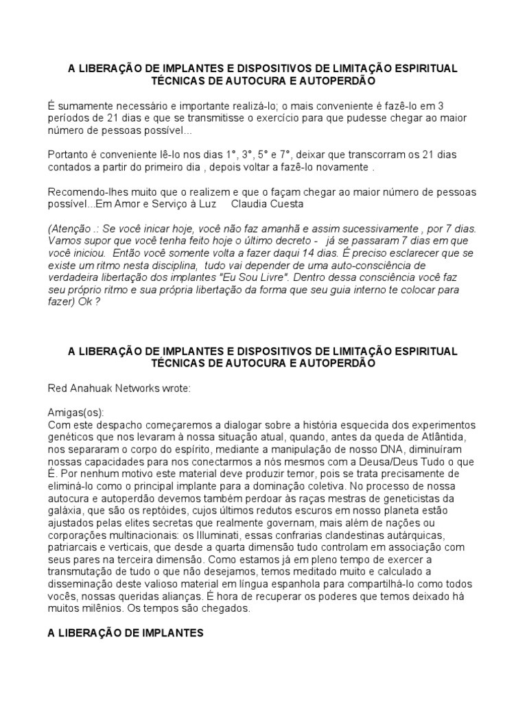 necessidade de remover implantes e dispositivos de limitação espiritual. Se já sabes que