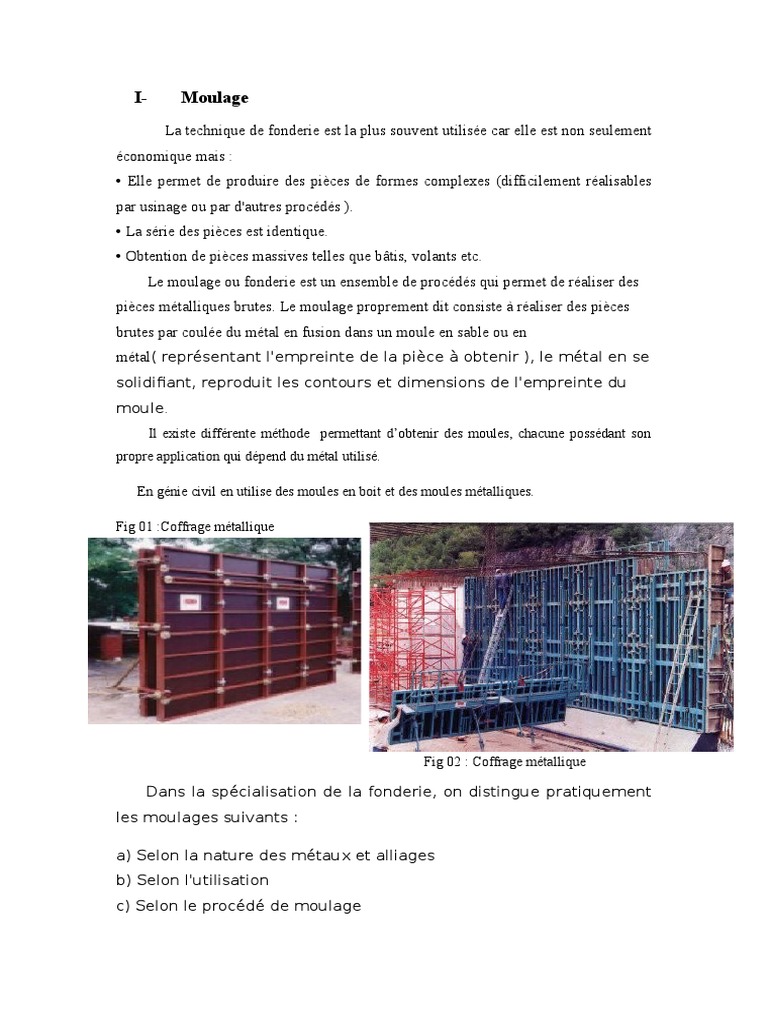 pices mtalliques brutes. Le moulage proprement dit consiste raliser des pices
