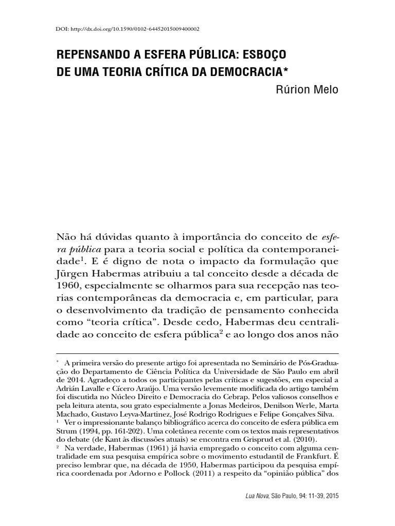 Esfera Pblica; Democracia; Teoria Crtica;