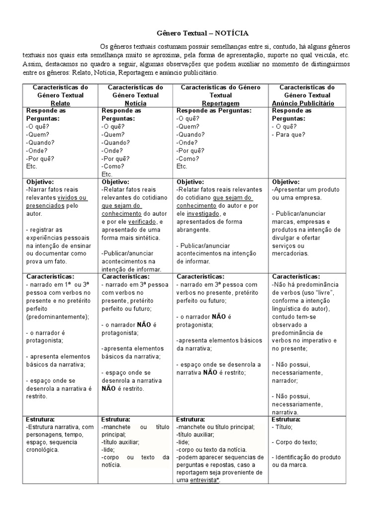 entre os gneros: Relato, Notcia, Reportagem e anncio publicitrio.