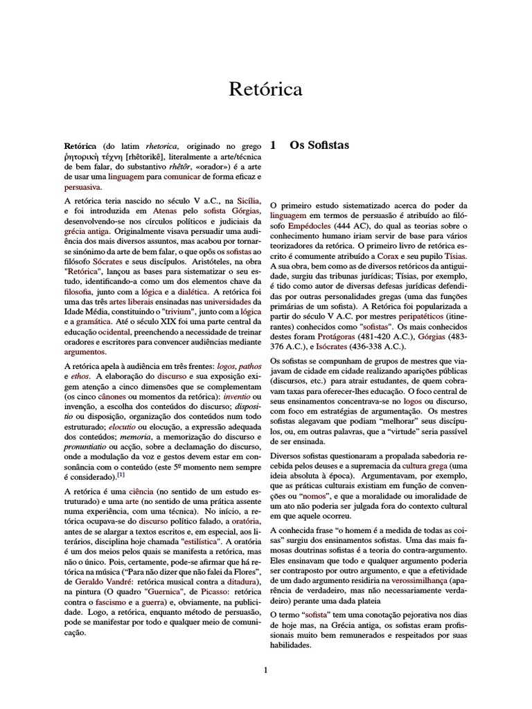 fala (estilo), enquanto retrica denida como a arte da