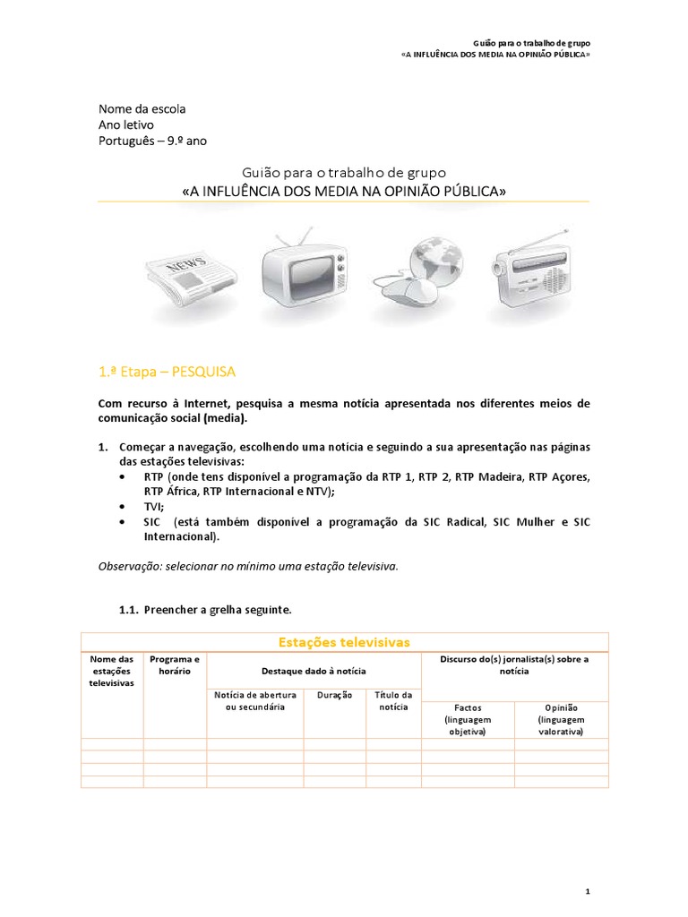 Com recurso Internet, pesquisa a mesma notcia apresentada nos diferentes meios de
