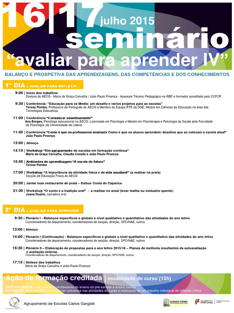 15:30 | Plenrio II Elaborao de propostas para o ano letivo 2015/16 Planos de melhoria resultantes da autoavaliao