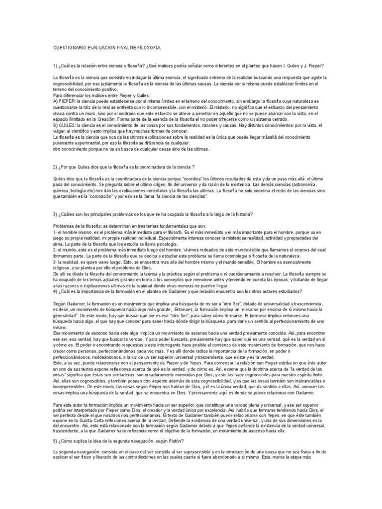 1) Cul es la relacin entre ciencia y filosofa? Qu matices podra sealar como diferentes en el planteo que hacen I. Quiles y J. Pieper?