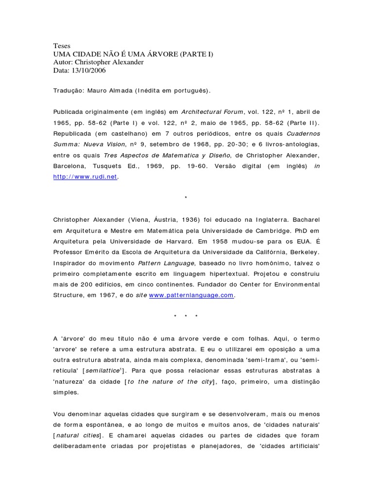 complexos. Mas a cidade no , no pode ser, nem deve ser uma rvore. A