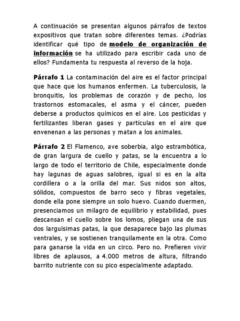 El conceptismo se basa en el fondo. Y es. culturismo y conceptismo no sólo son dos escuelas completamente distintas. las riquezas y ordenación de las palabras en su principal fundamento. sino que además. se combaten entre sí. existen unos más largos) al que se le amarraban hilos multicolores. El culturismo se preocupa de la forma. A poco de terminar sus estudios se dio a conocer como notable poeta (…). patrón de los filósofos. De estos partían otras hebras unidas mediante nudos hechos a distancias variables y en hilos de diferentes colores. . más arduo que el de Baroja. Estudió teología en el Colegio Imperial de Madrid e ingreso posteriormente en las Universidades de Alcalá y de Salamanca. creía de su especialidad. Párrafo 6 Las capas vegetales fueron transformándose gradualmente en carbón debido al calor de la tierra.Párrafo 5 El quipu era un cordel de aproximadamente unos treinta centímetros (sin embargo. Párrafo 8 Pedro calderón de la Barca nació en Madrid de nobles progenitores. porque hay un tema sobre el cual quiso teorizar completamente en serio. sus escritos tienden a la inteligencia”. en las ideas. no obstante. a la descomposición y a la presión de masas de materia estratificada en proceso de acumulación. Párrafo 9 “Aún cuando se producen simultáneamente. por ventura. el mismo tema que Sócrates. Párrafo 7 El caso de Stendhal es.
