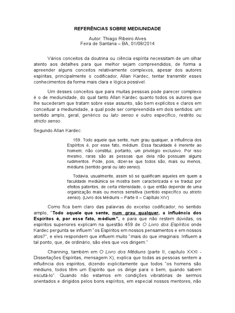 o de mediunidade, do qual tanto Allan Kardec quanto todos os autores que