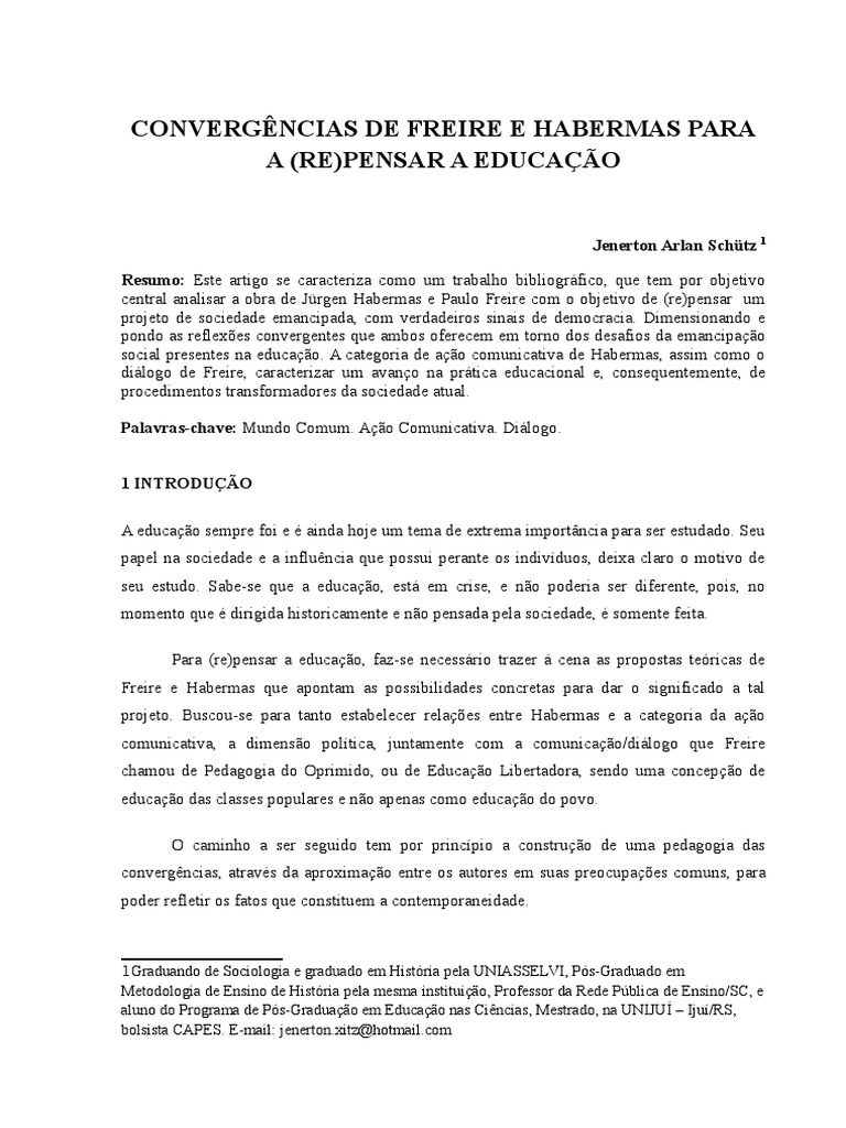 central analisar a obra de Jrgen Habermas e Paulo Freire com o objetivo de (re)pensar um