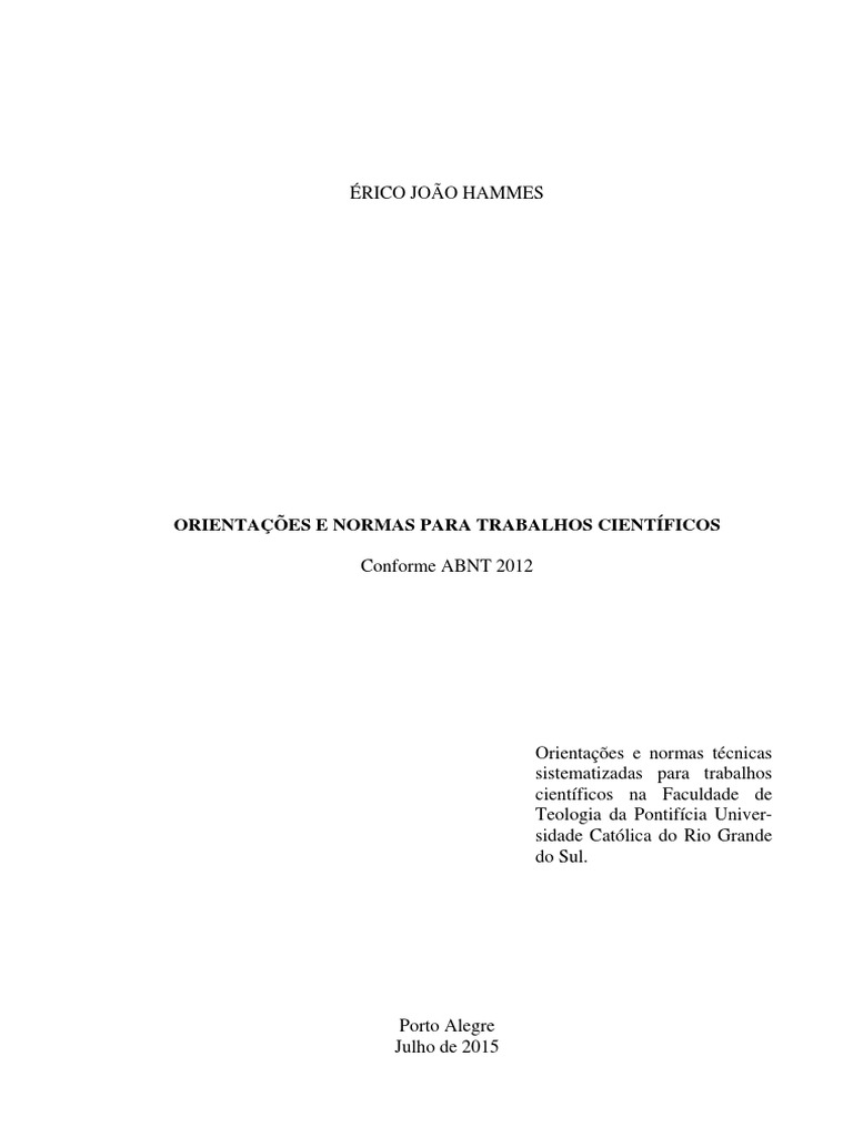 trabalhos cientficos. 11. ed. rev. e ampl. Porto Alegre: Sulina, 1986.