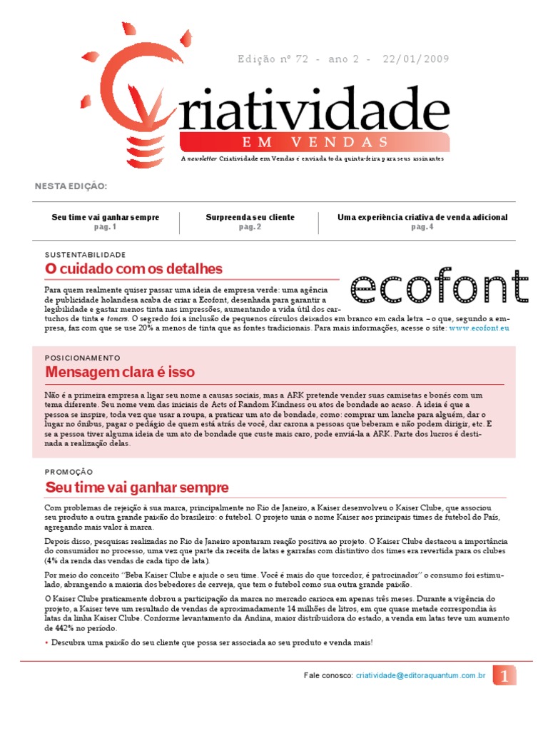 A newsletter Criatividade em Vendas é enviada toda quinta-feira para seus assinantes