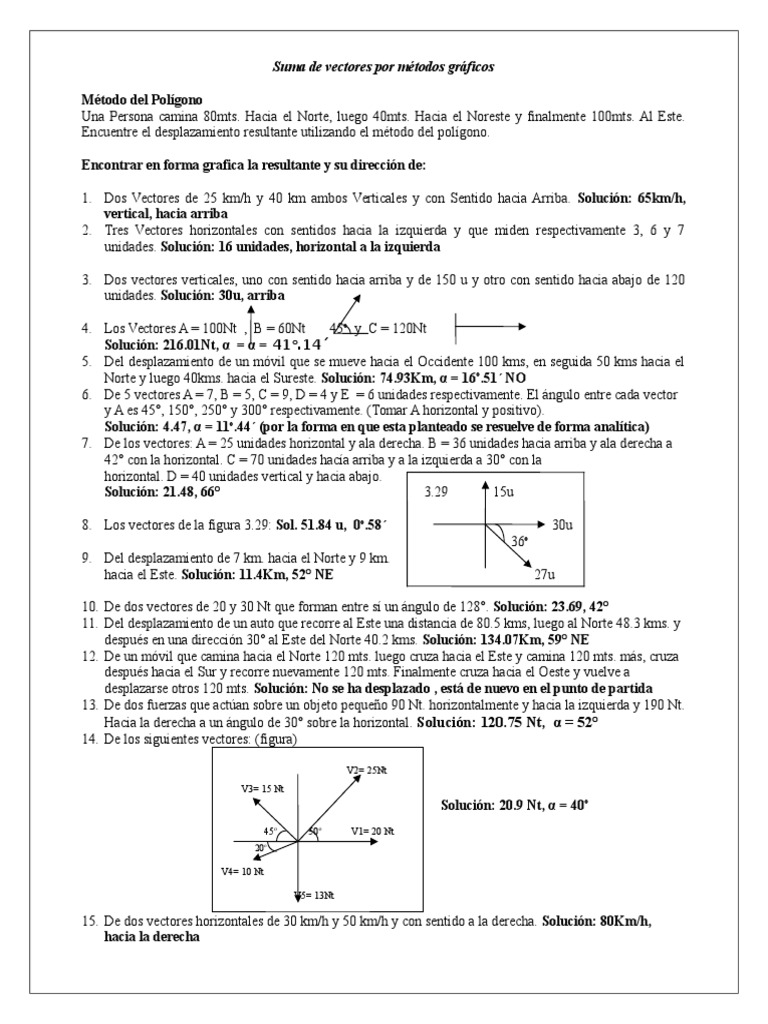 15. De dos vectores horizontales de 30 km/h y 50 km/h y con sentido a la derecha. Solución: 80Km/h,