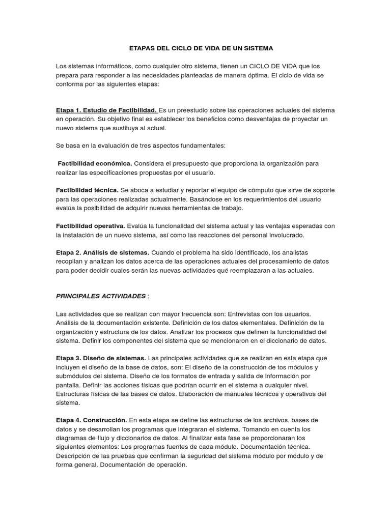 Los sistemas informáticos, como cualquier otro sistema, tienen un CICLO DE VIDA que los